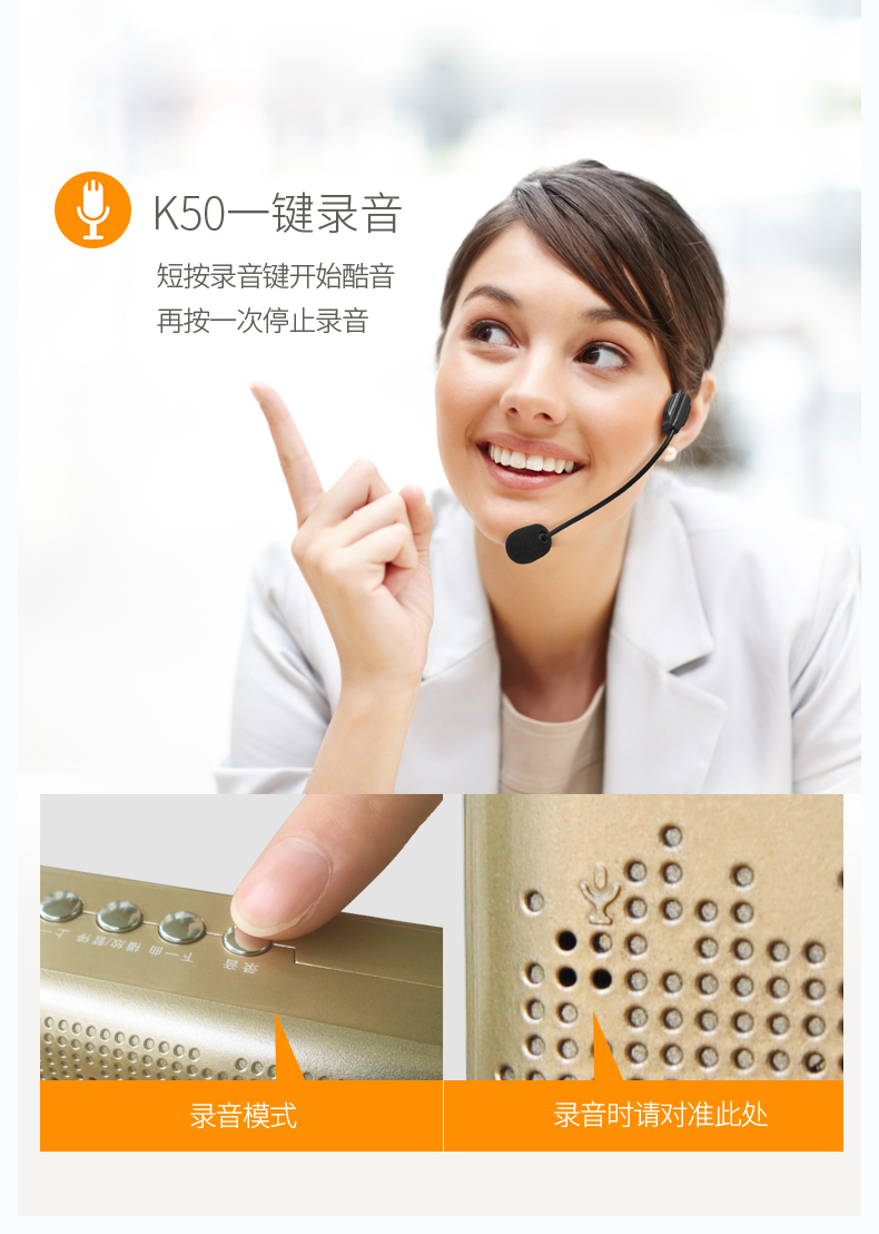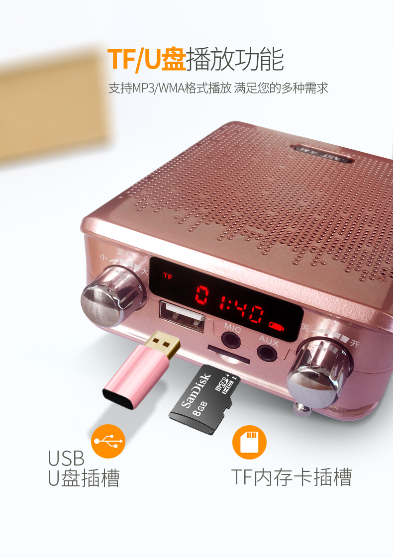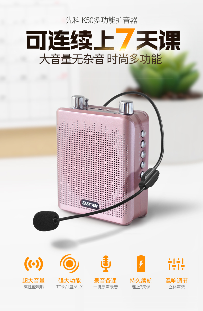 先科(SAST) K50 小蜜蜂无线便捷式扩音器 教学专用教师导耳麦游腰挂大功率喇叭插卡播放器 先科