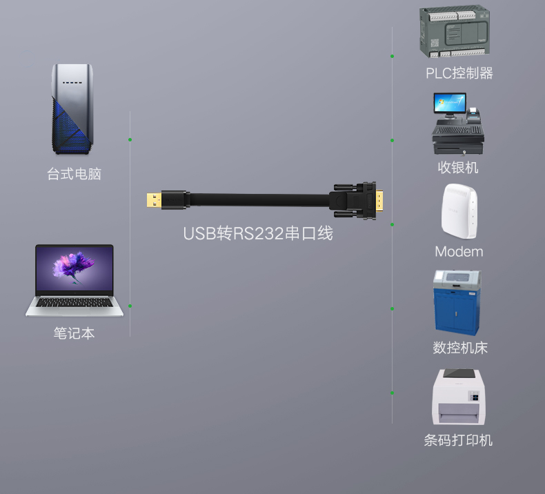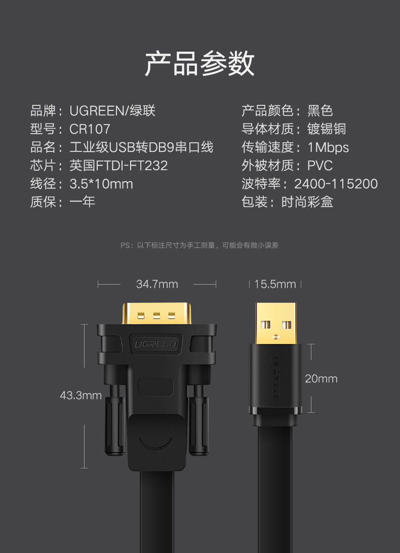 首页> 整机配件/网络信息> 网络产品> 线缆数据线> 绿联(UGREEN)USB转RS232串口连接转换线 1米 (WXPH) usb转RS232 1米