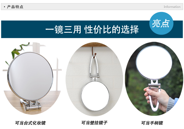 首页> 家具智能/手机数码> 日常日用> 居家日用> 易佳智 高清多用台式化妆镜小镜子3倍放大手柄镜手拿便携折叠壁挂镜美容镜子 圆形(DX) 高清多用台式