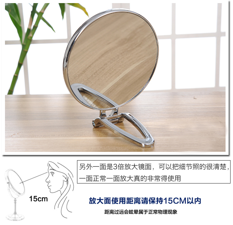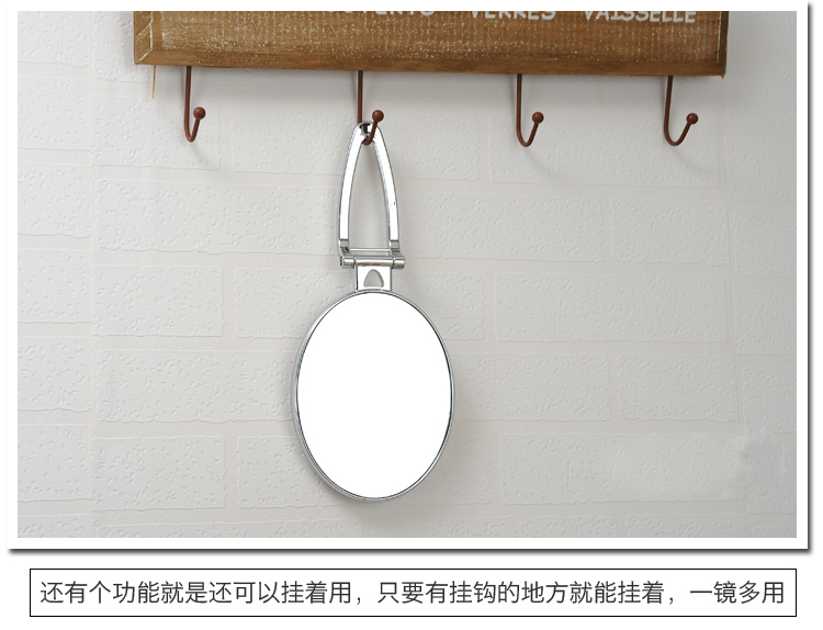 易佳智 高清多用台式化妆镜小镜子3倍放大手柄镜手拿便携折叠壁挂镜美容镜子 圆形(DX) 高清多用台式